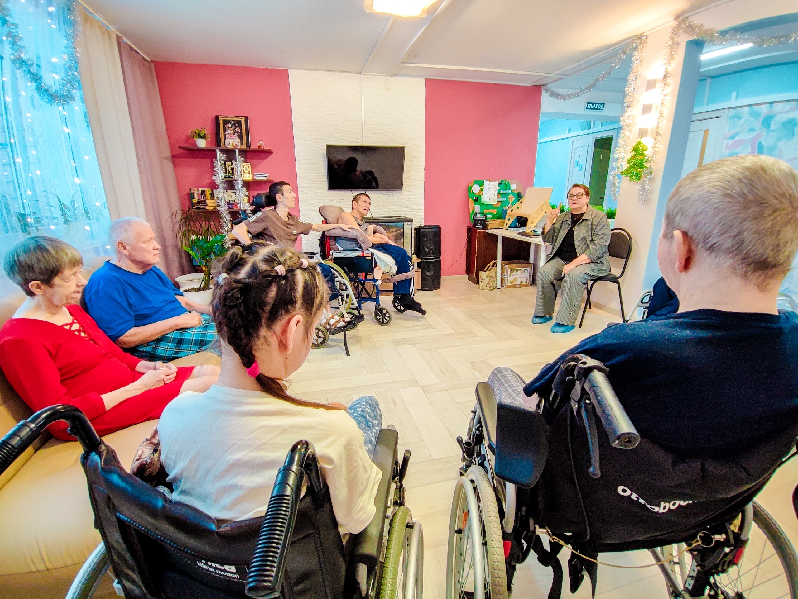 Здесь живут люди, которые по своему психическому состоянию неспособны жить в семье, в обществе, в силу утраты либо недоразвития способностей к самообслуживанию, самообеспечению и продуктивному общению.
