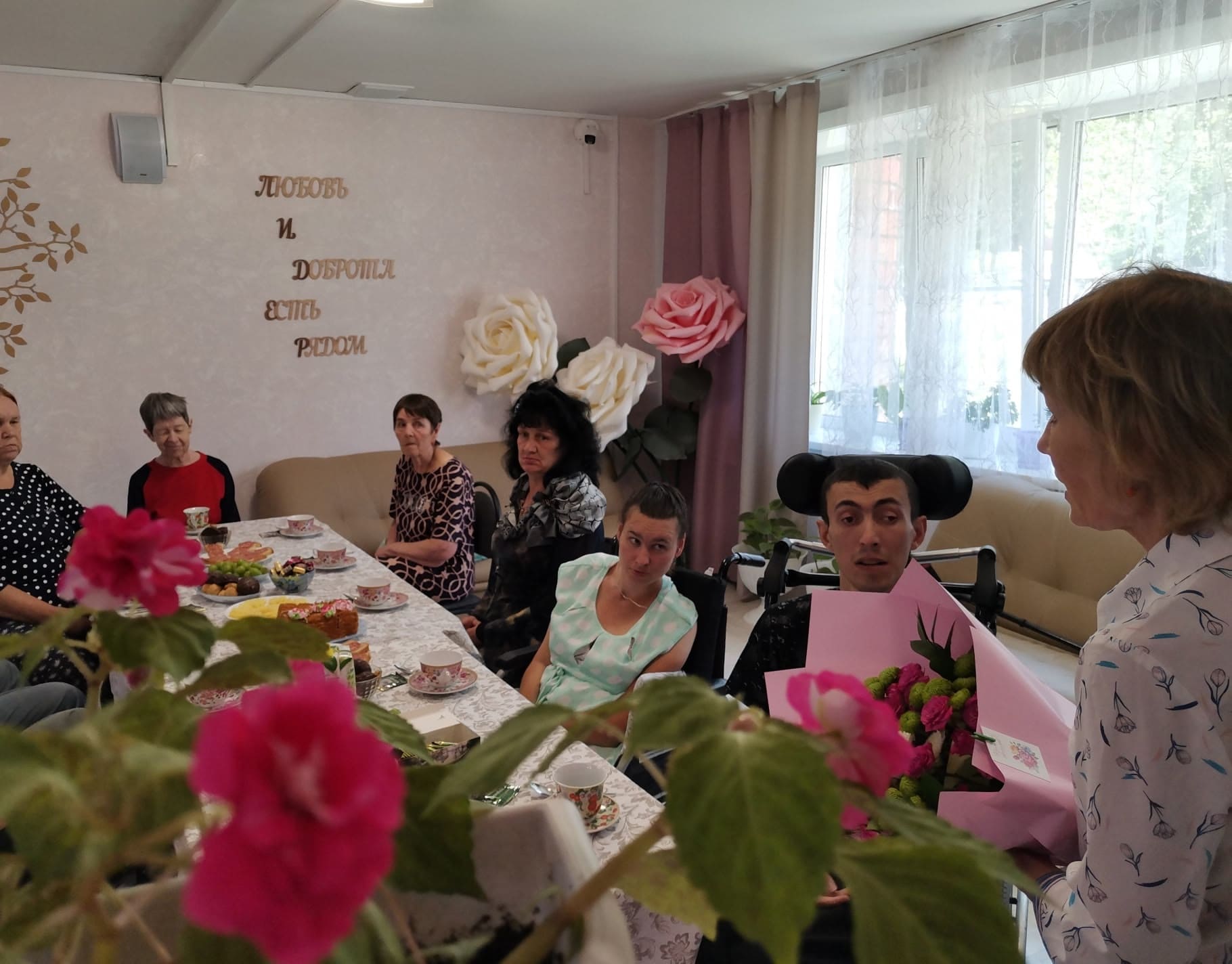 Много откровений и искренних слов услышала Татьяна Юрьевна, ощутила запах подаренных цветов от «племянника» (так нарёк себя молодой наш маломобильный подопечный Гарик). Столько улыбок, радостных волнующих мгновений, «кружение» в танце, открытий — и это признание, подарки для Вас, Татьяна Юрьевна! Несомненно, значит, ценят не по привычке, а от ДУШИ!