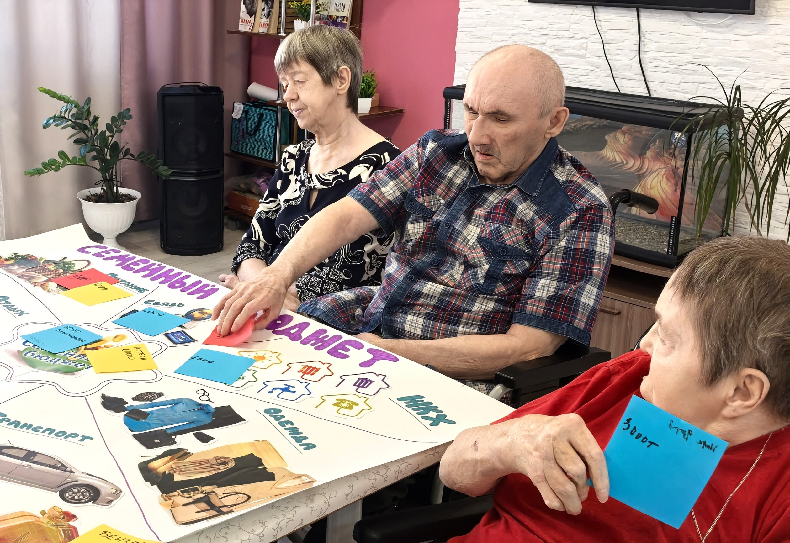 Жители также занимаются в специальной развивающей программе посредством ПК — тренажер денежного счета, который помогает разобраться в номиналах банкнот и монет.